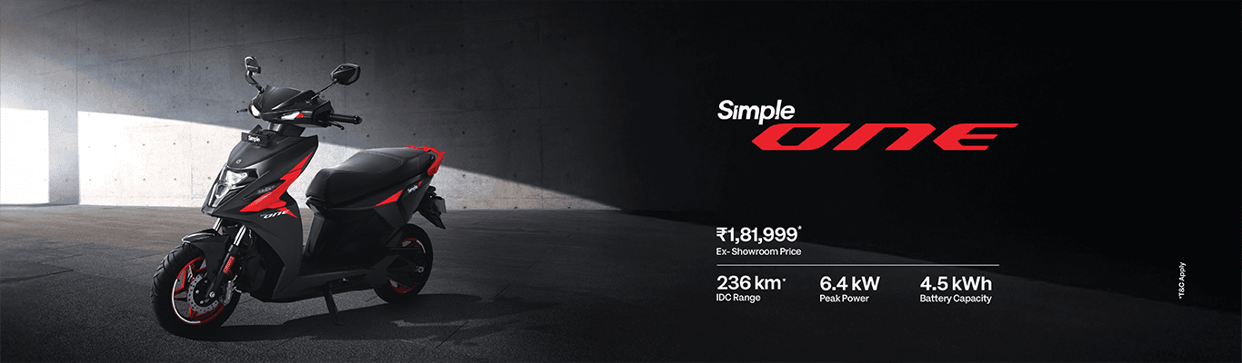 We are Simple Energy, a leading automobile company that makes electric scooters in India which are meant to give you the best possible riding experience. Our flagship scooter, Simple One, is an electric scooter that’s equipped with everything that a rider wants. With a 248 km range and lightning-fast pickup (0-40 in just 2.77 seconds), it's perfect for racing to work or exploring new corners of the city. Just plug in at home and ride. That's why thousands of people who were just casually Googling "electric scooter near me" ended up choosing us and never looked back. Curious to know more? Visit us at one of our Simple Stores and take one for a ride. A few minutes on a Simple One and you'll wonder why you waited so long to make the switch.